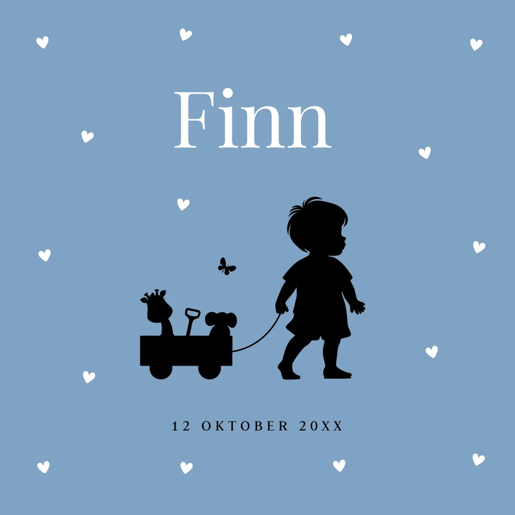 Geboortekaartje silhouet jongen kar hondje hartjes blauw
