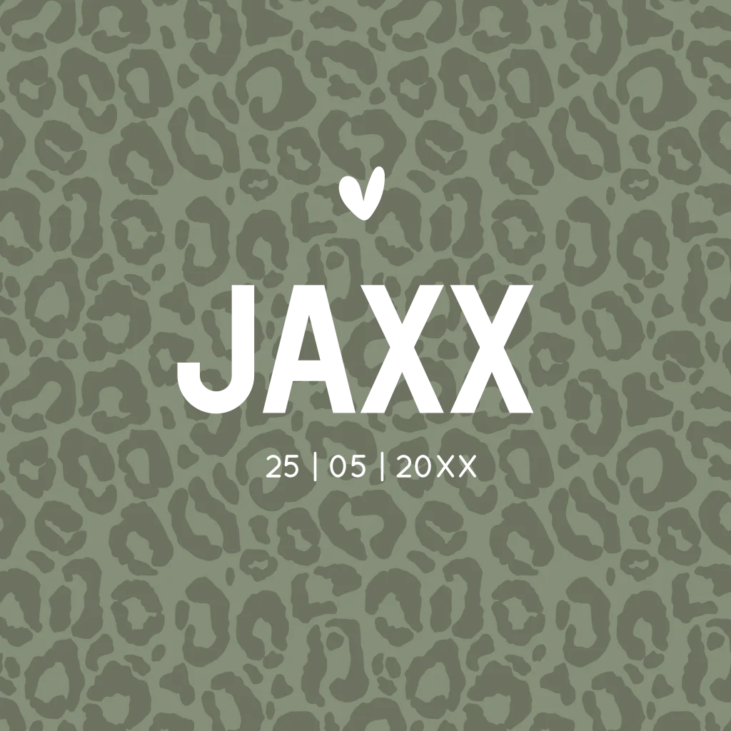 Hip geboortekaartje voor een jongen groen met panterprint en goudfolie. Pas de kleuren naar wens aan.