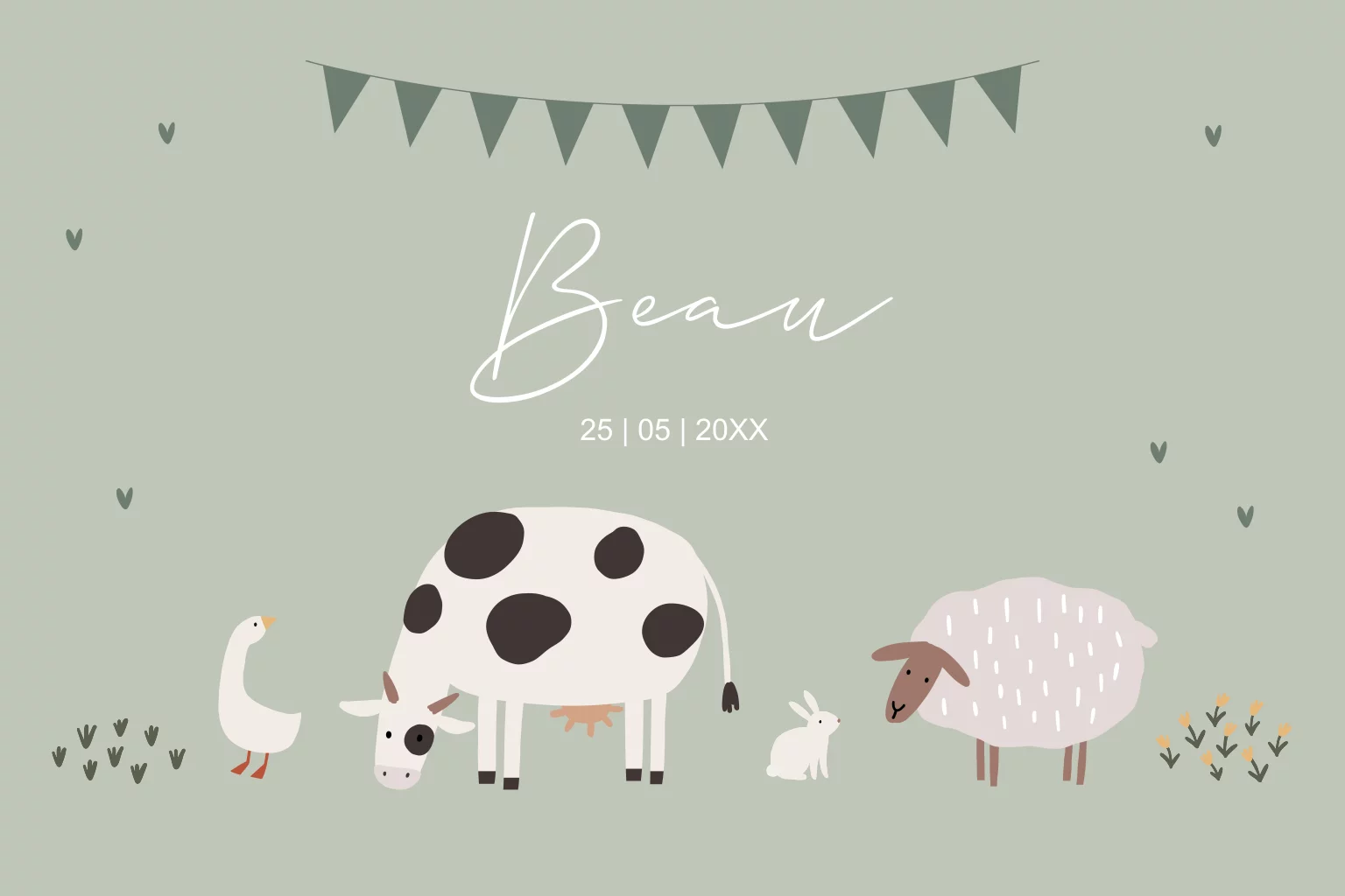 Geboortekaartje boerderij dieren koe schaap