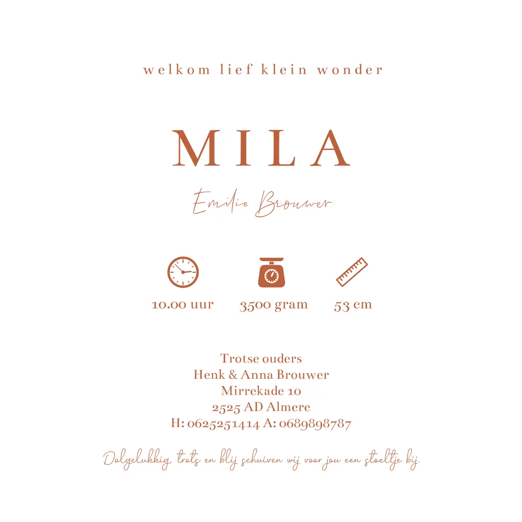 Geboortekaartje meisje wolfje omringd door gras en bloemen