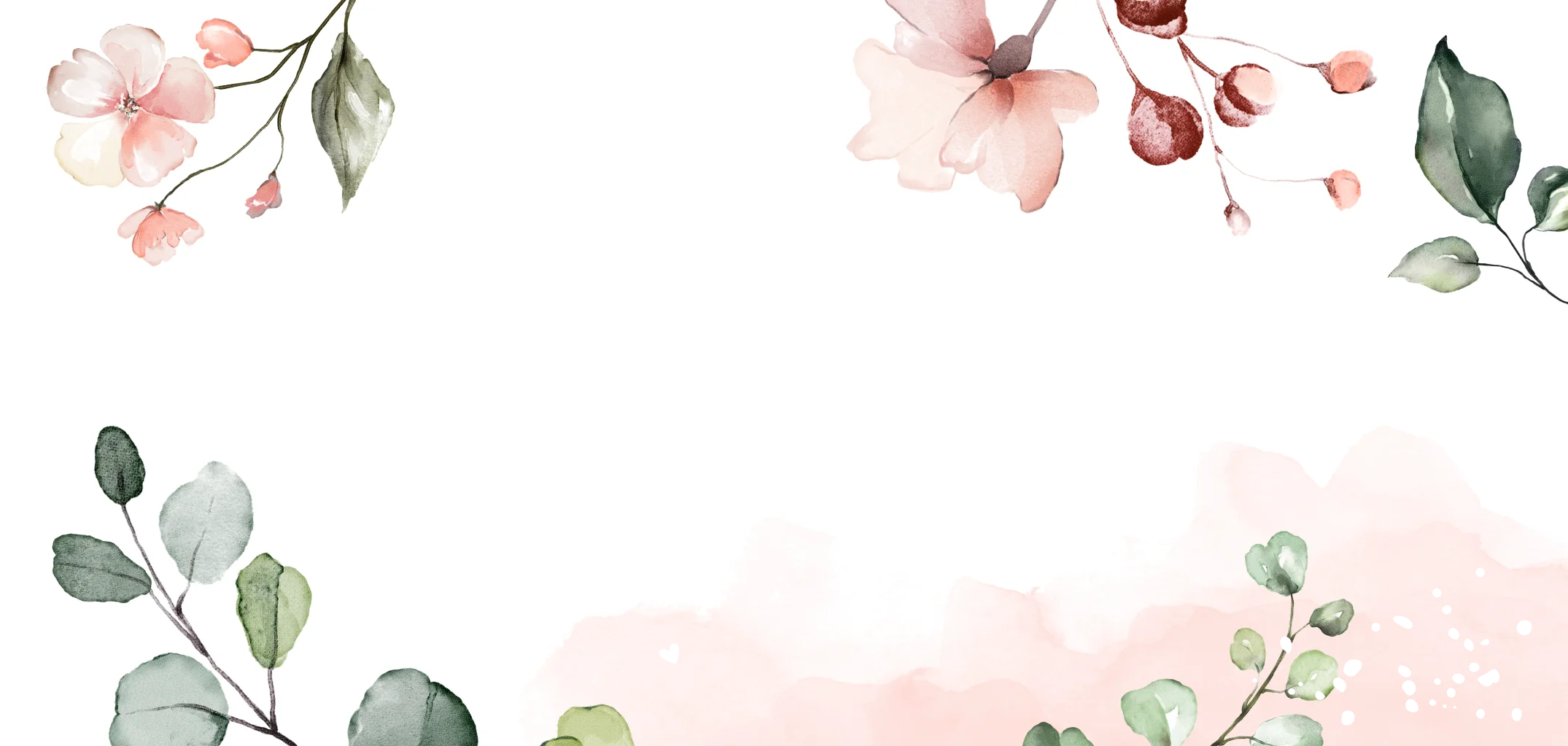 Geboortekaartje voor een tweeling meisjes langwerpig met roze bloemen, bladeren groen en watercolour.