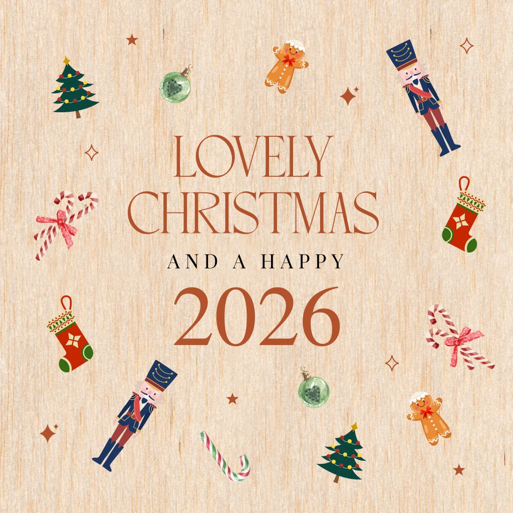 Zakelijke kerstkaart echt hout met kerst figuurtjes