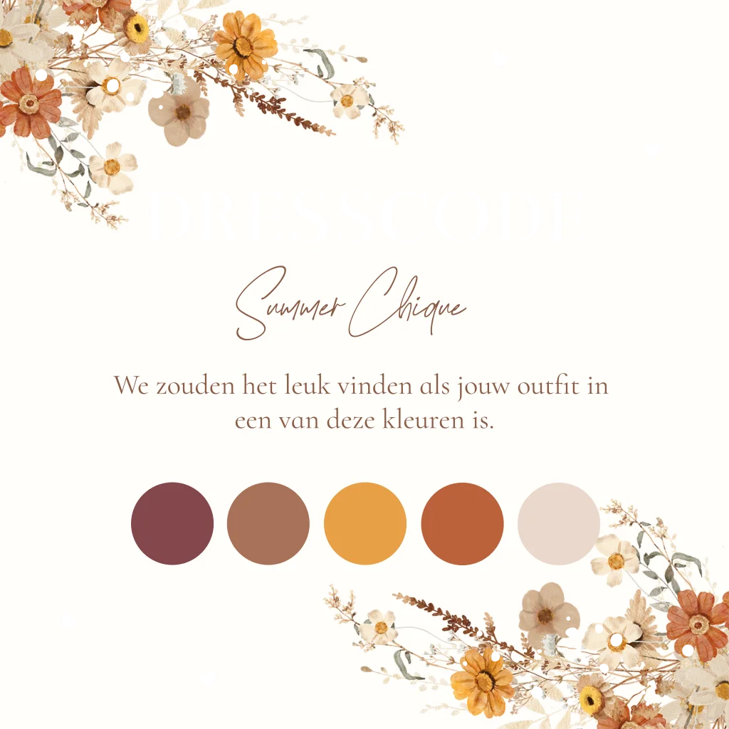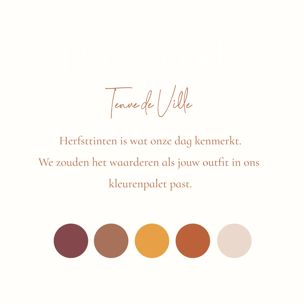 Dresscode kaartje huwelijk Tenue de Ville met kleurenpalet.