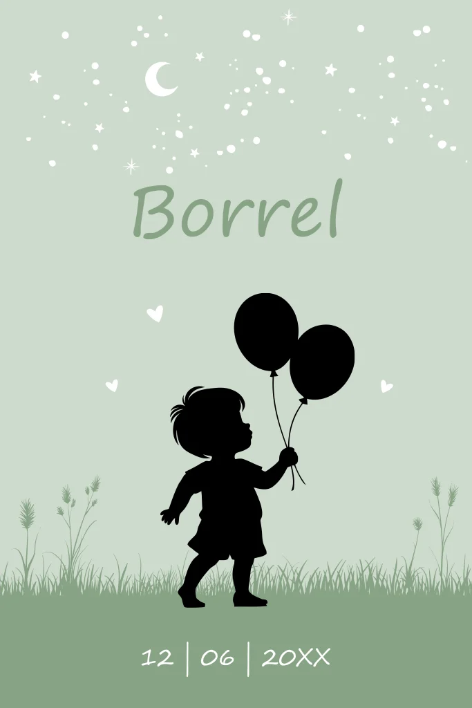 Babyborrel kaartje voor een jongen met silhouet groen en ballonnen.