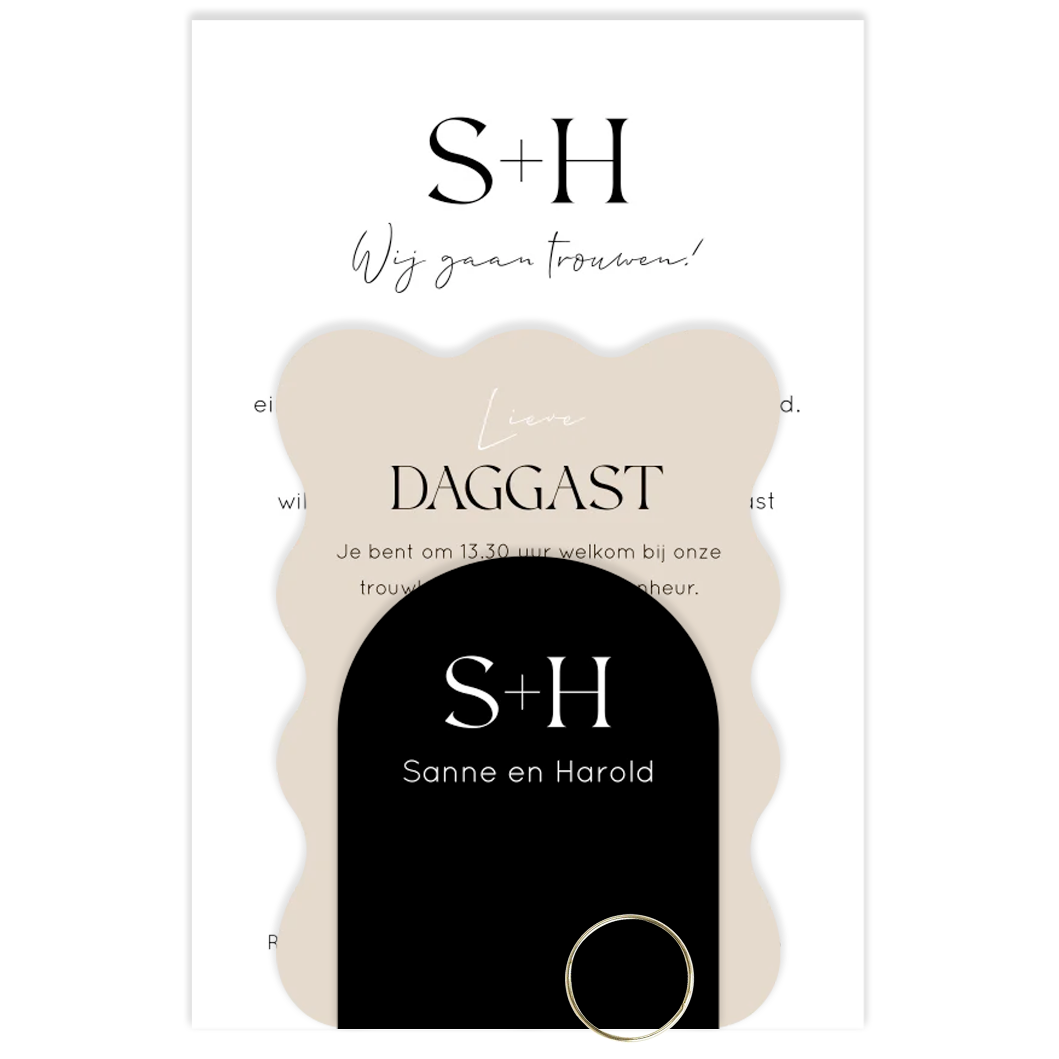 Gaan jullie binnenkort trouwen? Kies voor deze mooie originele trouwkaart met meerdere labels zwart en wit. Pas de kleuren naar wens aan of voeg een mooie foto toe.