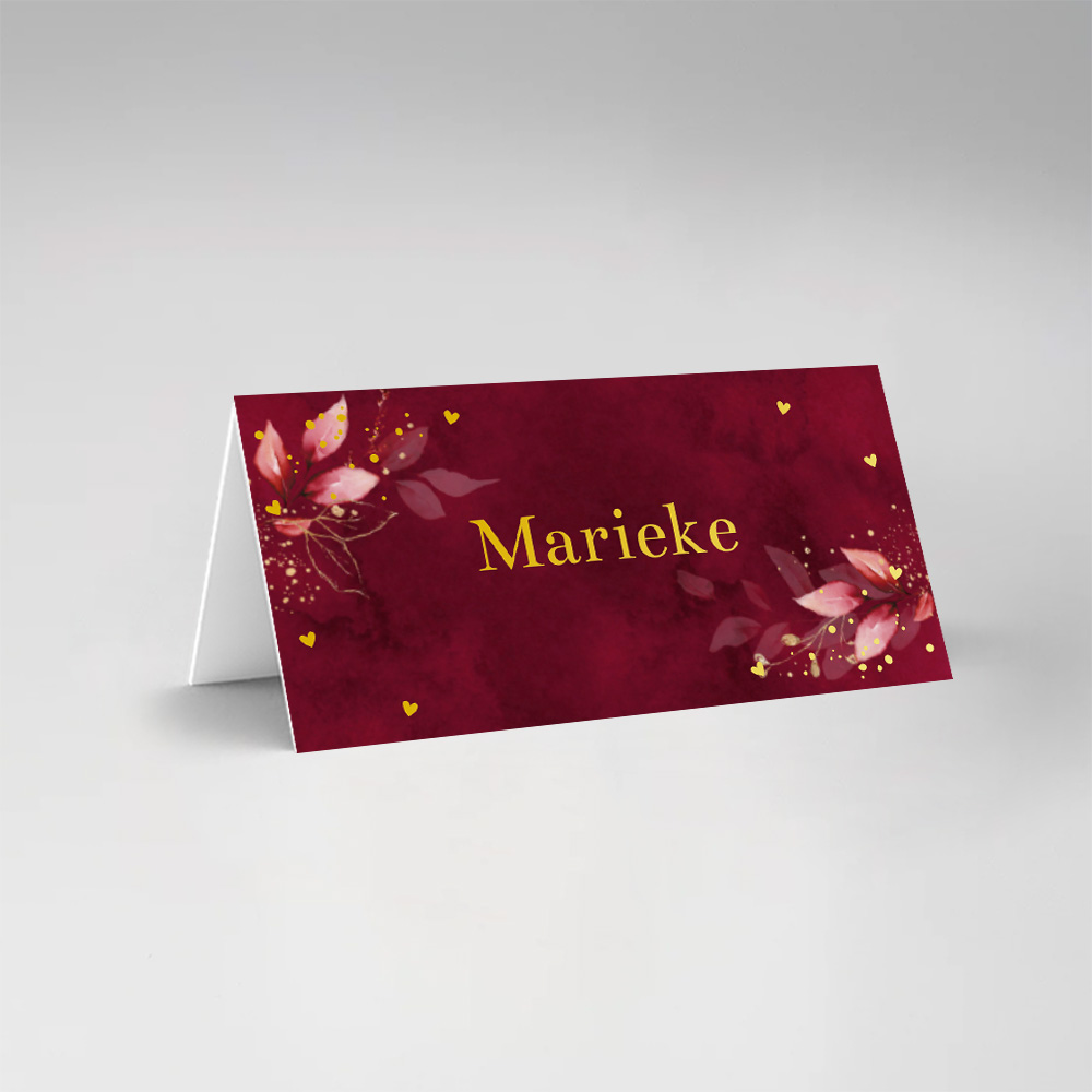 Maak jullie feest compleet en bestel naamkaartjes in de stijl van jullie kaart. Pas gemakkelijk het design zelf aan en ga aan de slag met onze editor. Voeg zo super simpel elementen zelf toe of verwijder details, die jij minder mooi vindt. Wist je dat je met een lettertype bijvoorbeeld een hele andere look kan creëren? Mocht je er niet uitkomen, neem dan gerust contact met ons op. Wij zijn er om je te helpen.