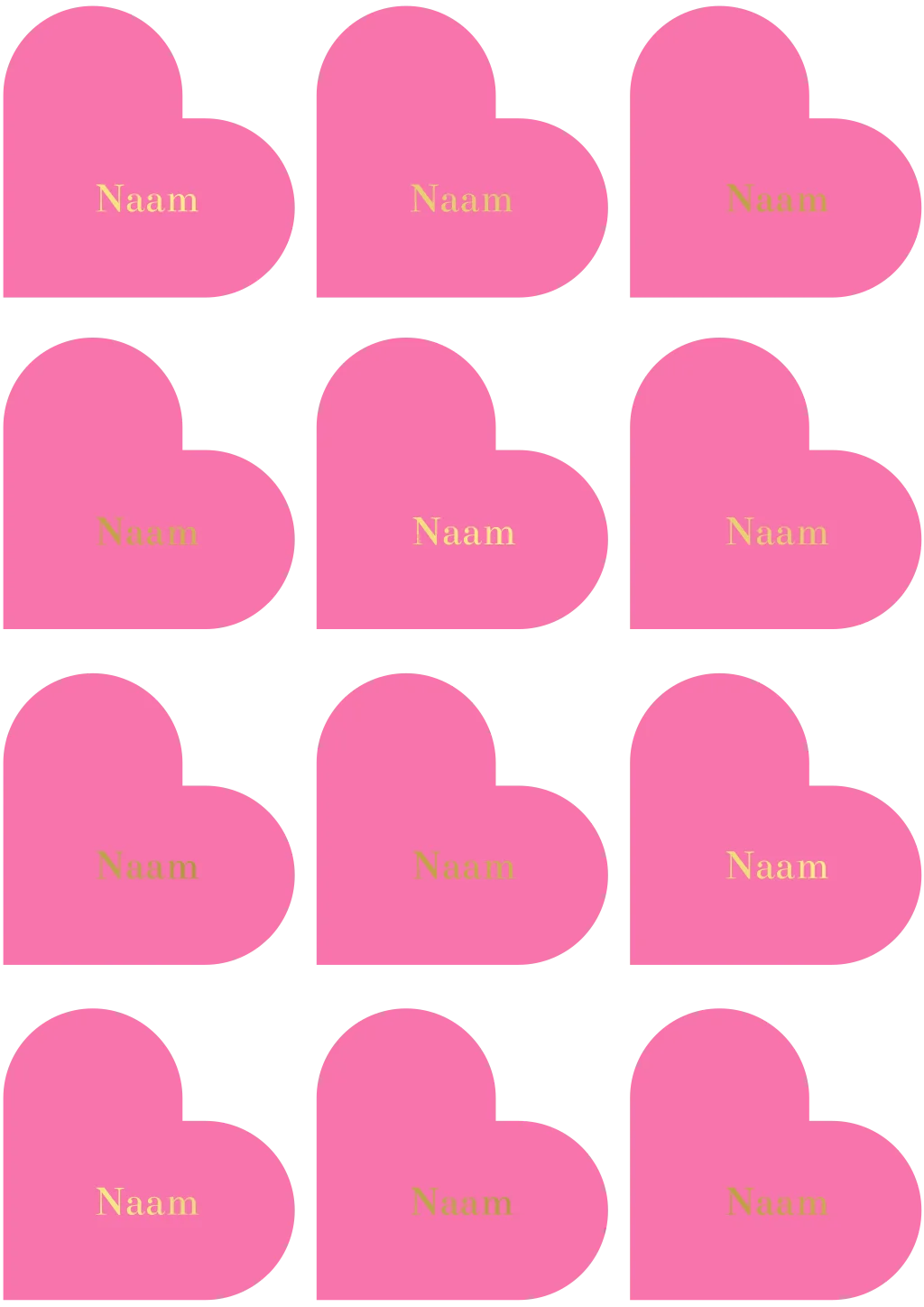 Naamkaartjes bruiloft hartjes roze met luxe goudfolie.