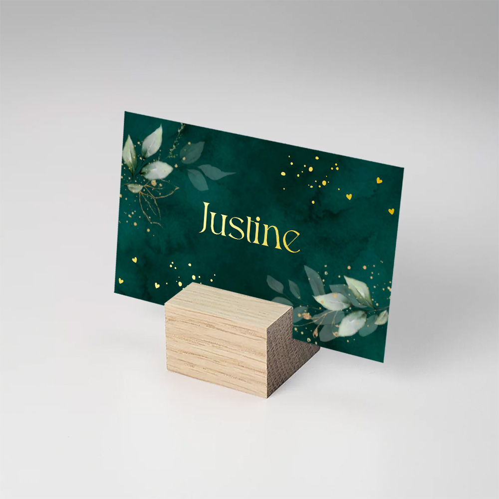 Naamkaartjes huwelijk donkergroen botanisch bladeren goudfolie