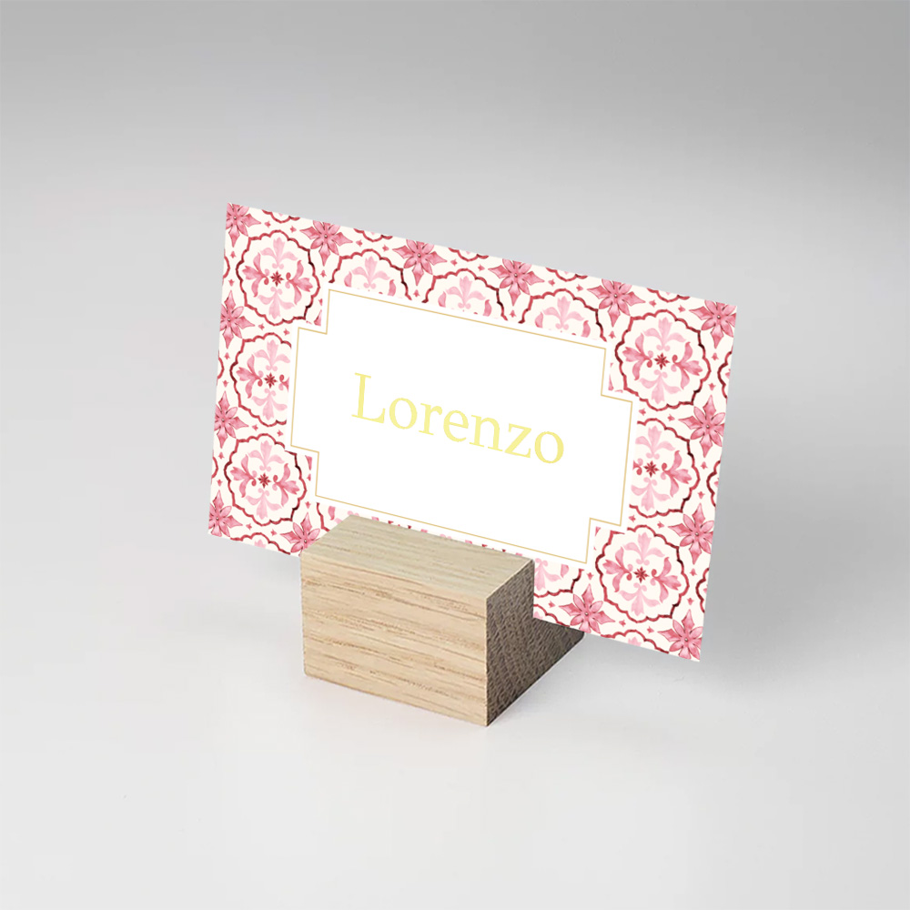 Naamkaartjes huwelijk mediterraans patroon rood