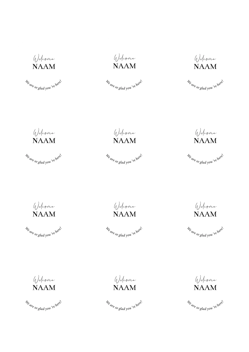 Naamkaartjes huwelijk zwart wit rond plaatskaartjes