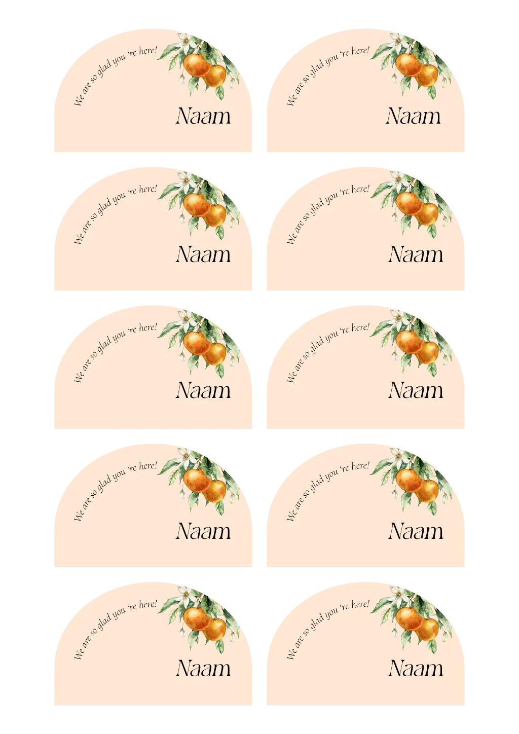 Plaatskaartjes boog Mediterraans sinaasappels oranje bruiloft