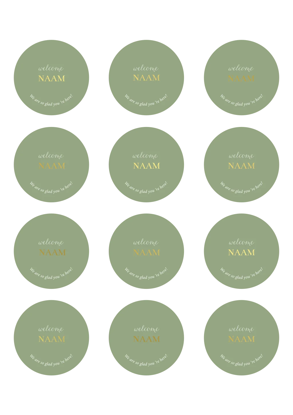 Plaatskaartjes rond olijfgroen goudfolie bruiloft