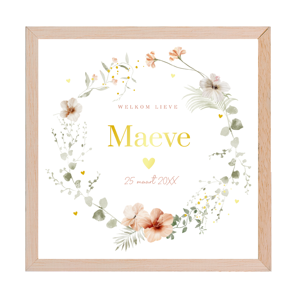 De getoonde lijst is als voorbeeld en wordt niet meegeleverd. Shop een passende lijst naar keuze bij bijvoorbeeld Ikea, Hema of bol.com.