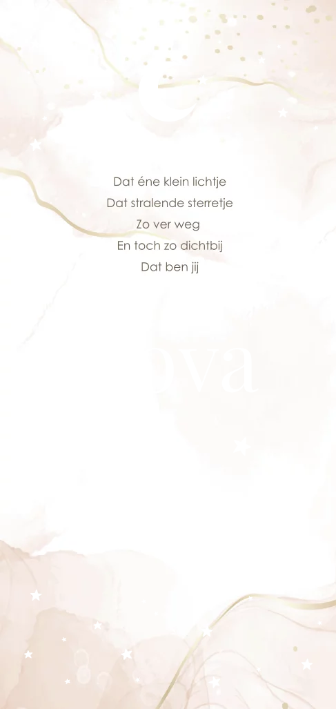 Rouwkaartje voor een baby beige met sterren en maan in goudfolie.