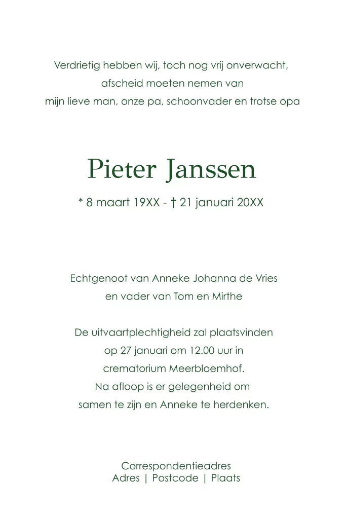 Rouwkaart met foto van het bos met uitzicht over het Leikeven