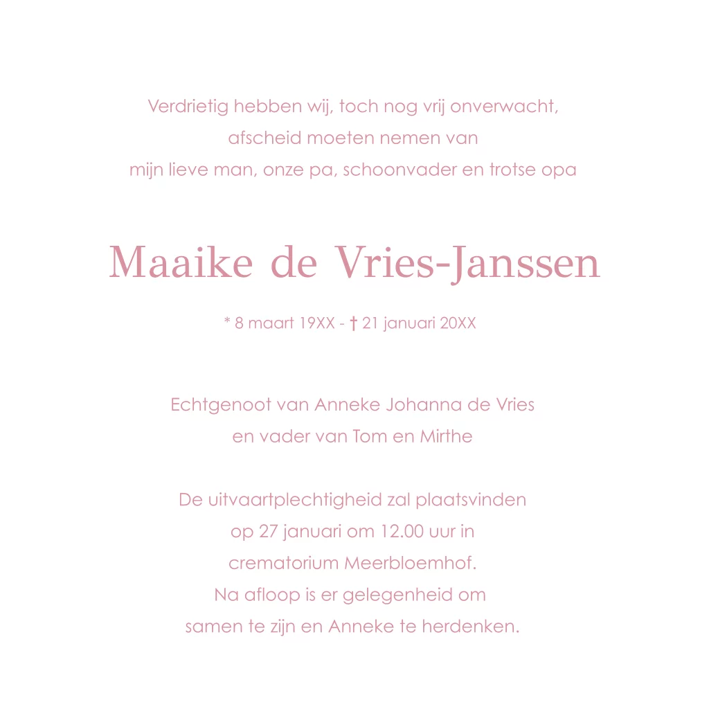 Rouwkaart roze voor een vrouw met moderne holografische print