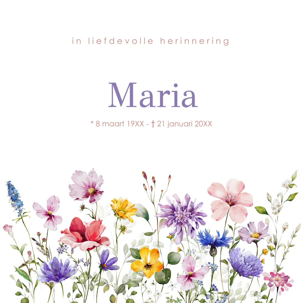 Rouwkaart vrouw kleurrijke veldbloemen watercolour