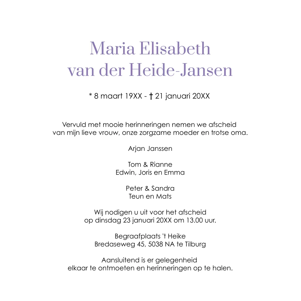 Een rouwkaart voor een vrouw met prachtige watercolour veldbloemen. In de binnenkant is plaats voor een foto.