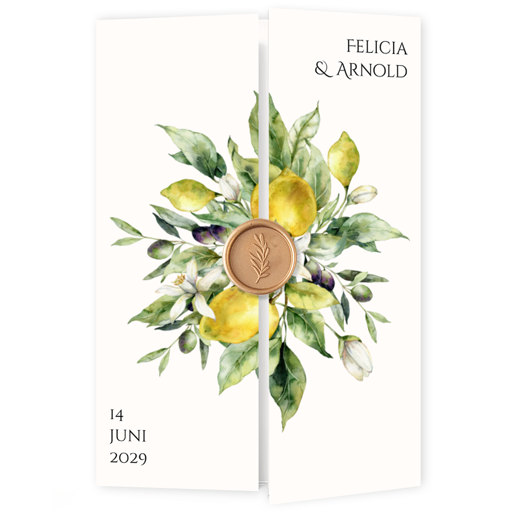 Drieluik trouwkaart Mediterraans citroenen geel