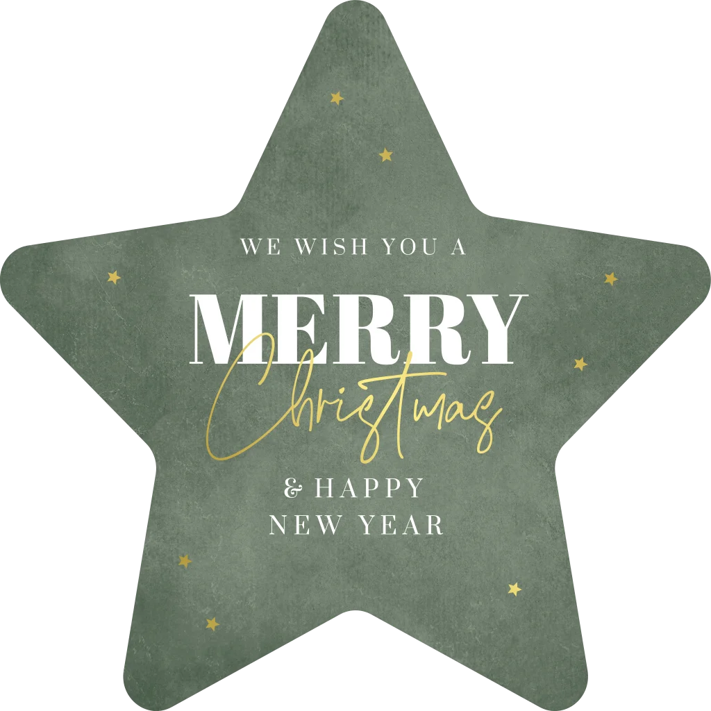 Zakelijke kerstkaart groen ster vorm Merry Christmas goudfolie