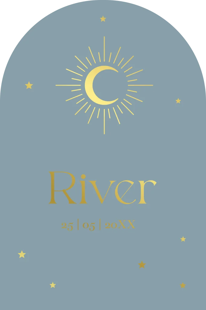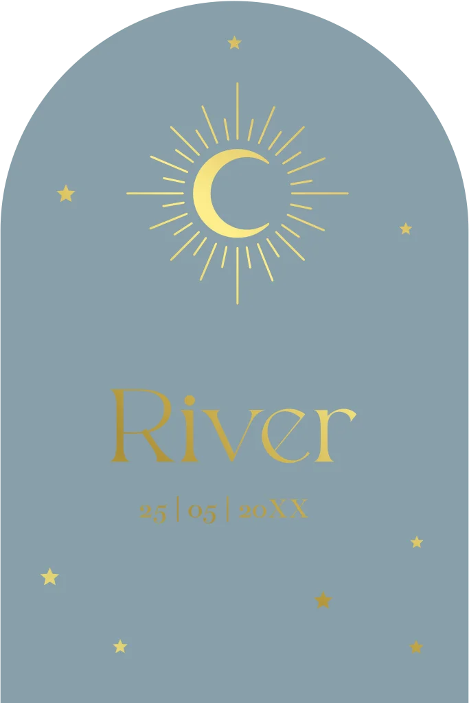 Origineel geboortekaartje blauw zon maan goudfolie