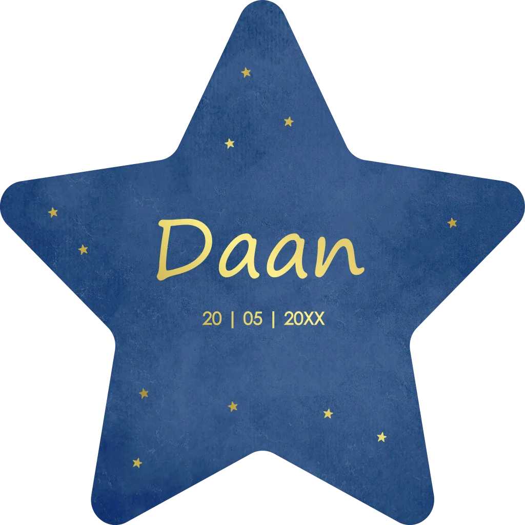 Geboortekaartje jongen in de vorm van een ster blauw met goudfolie.