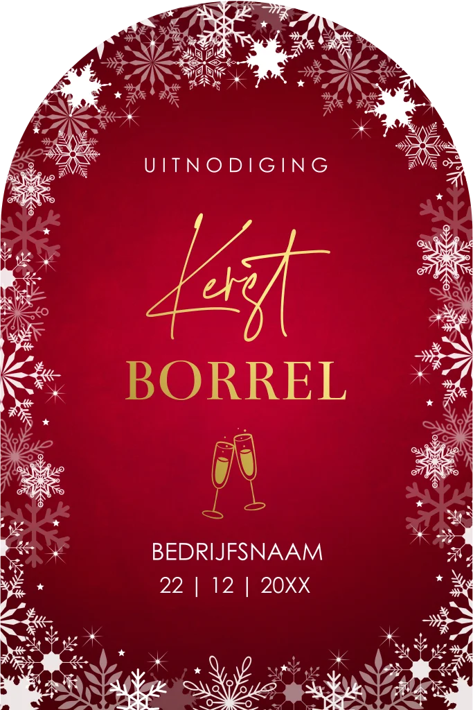 Uitnodiging kerstborrel zakelijk rood boog goudfolie