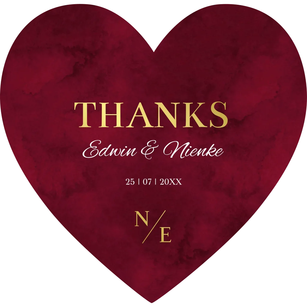 Bedankkaart huwelijk stijlvol rood vorm hartje
