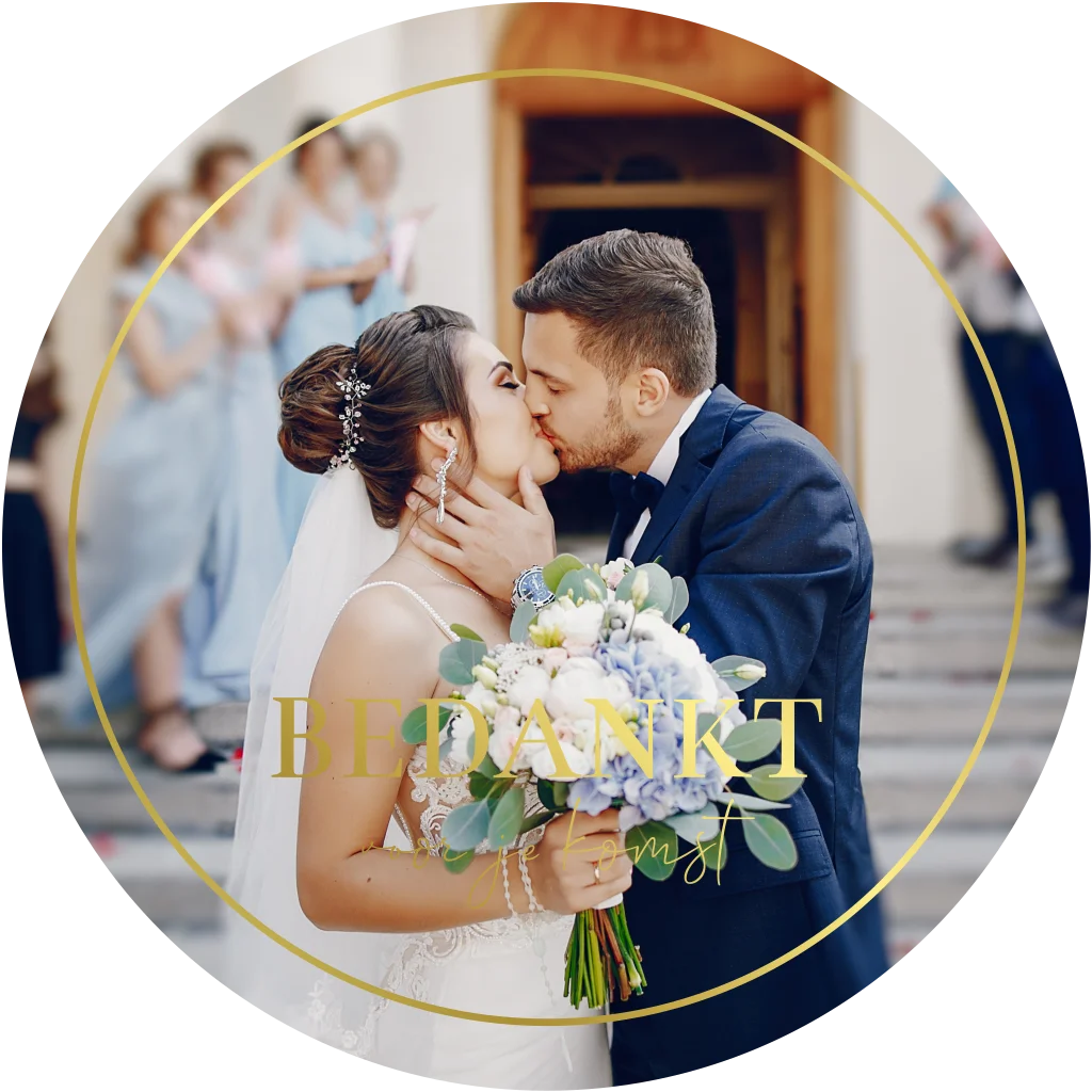 Bedankkaart huwelijk rond met goudfolie. Bedank jullie gasten voor een onvergetelijke dag met deze prachtige bedankkaart.