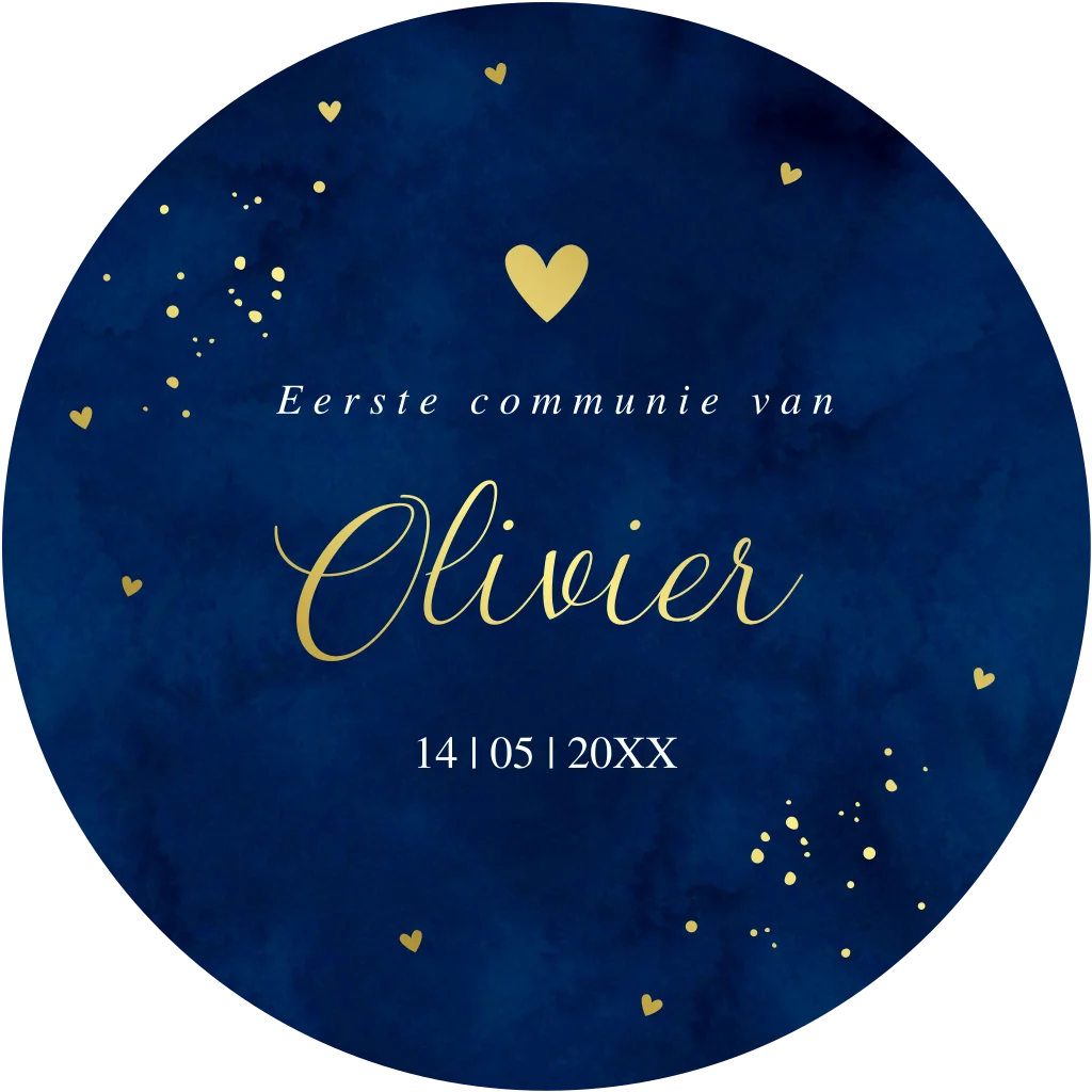 Communie uitnodiging rond jongen blauw hartjes goudfolie