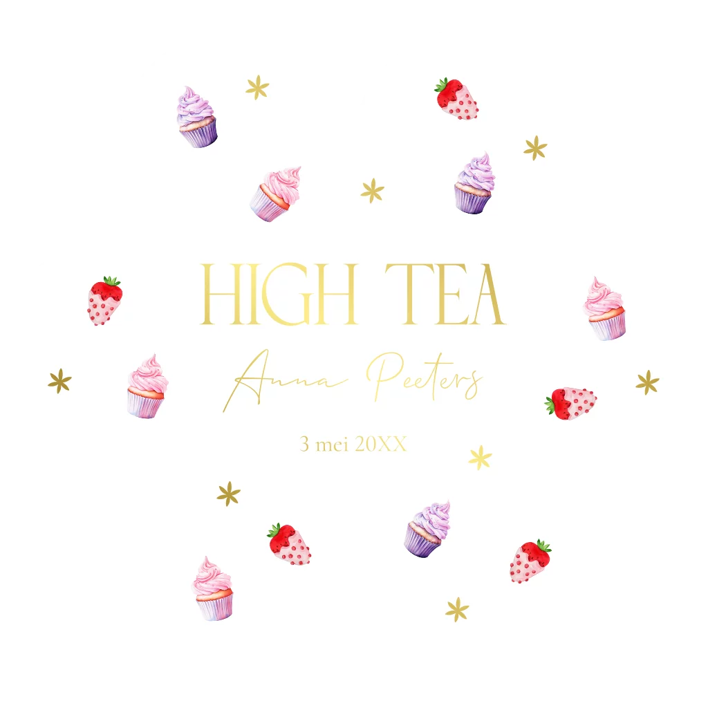 High Tea Party uitnodiging bloem vorm goudfolie