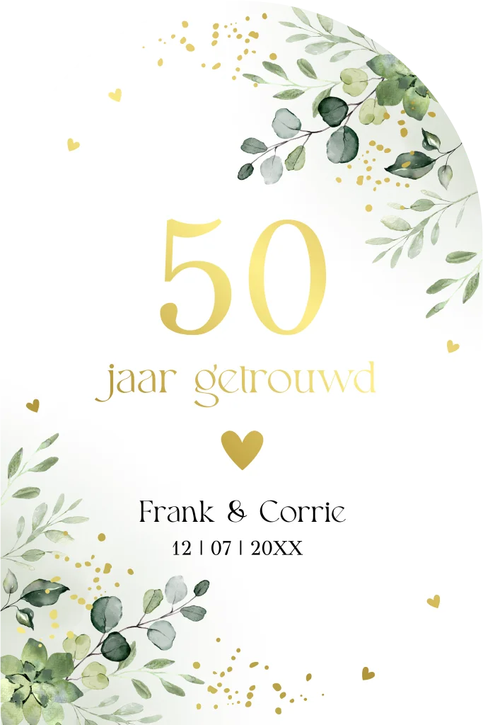 Jubileum uitnodiging 50 jaar getrouwd boog botanisch groen bladeren