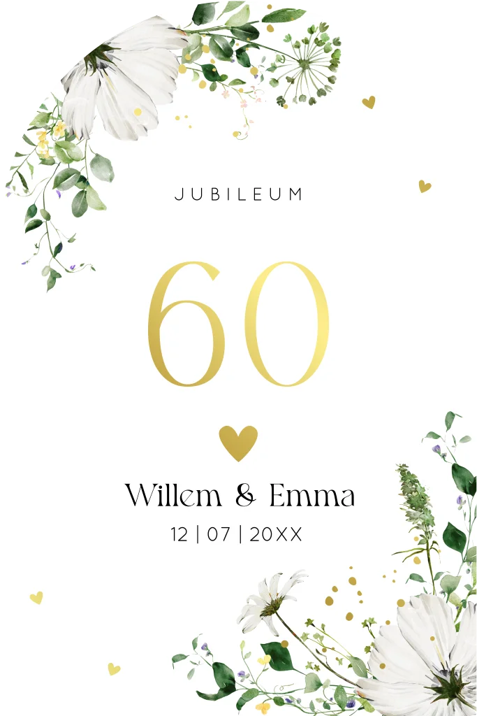 Jubileumkaart uitnodiging 60 jaar getrouwd botanisch groen goudfolie