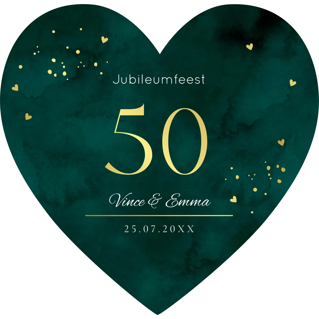 Jubileumkaart vorm hartje groen goudfolie 50 jaar getrouwd