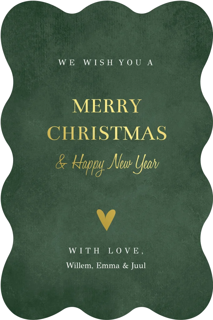Kerstkaart groen originele vorm golvend groen goudfolie