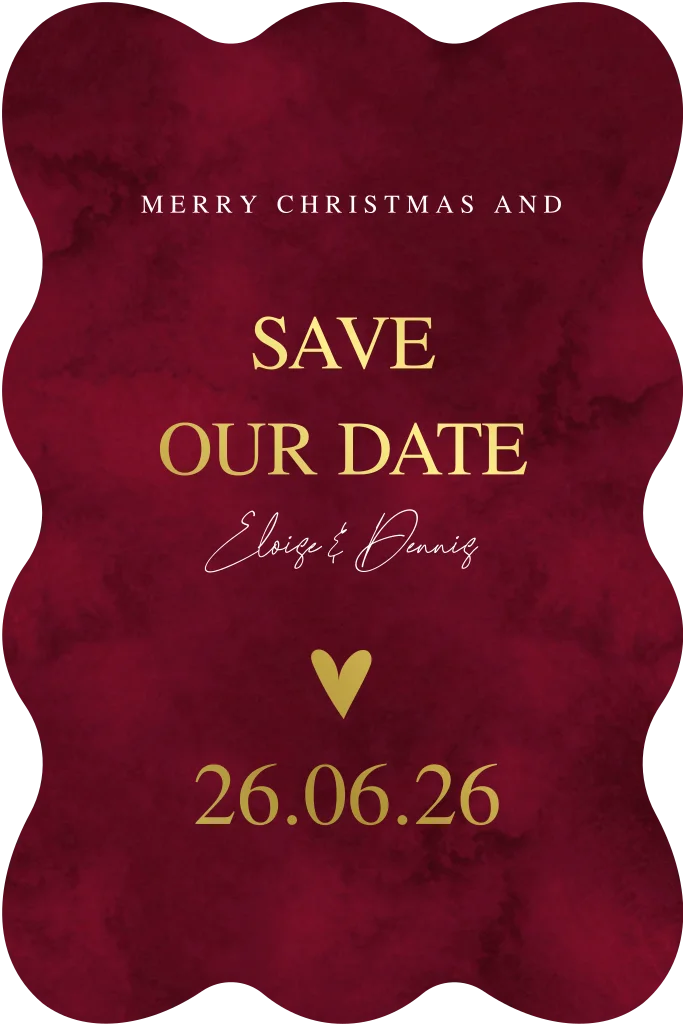 Save the Date kerstkaart originele vorm golvend rood goudfolie