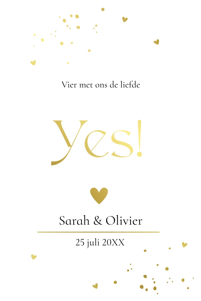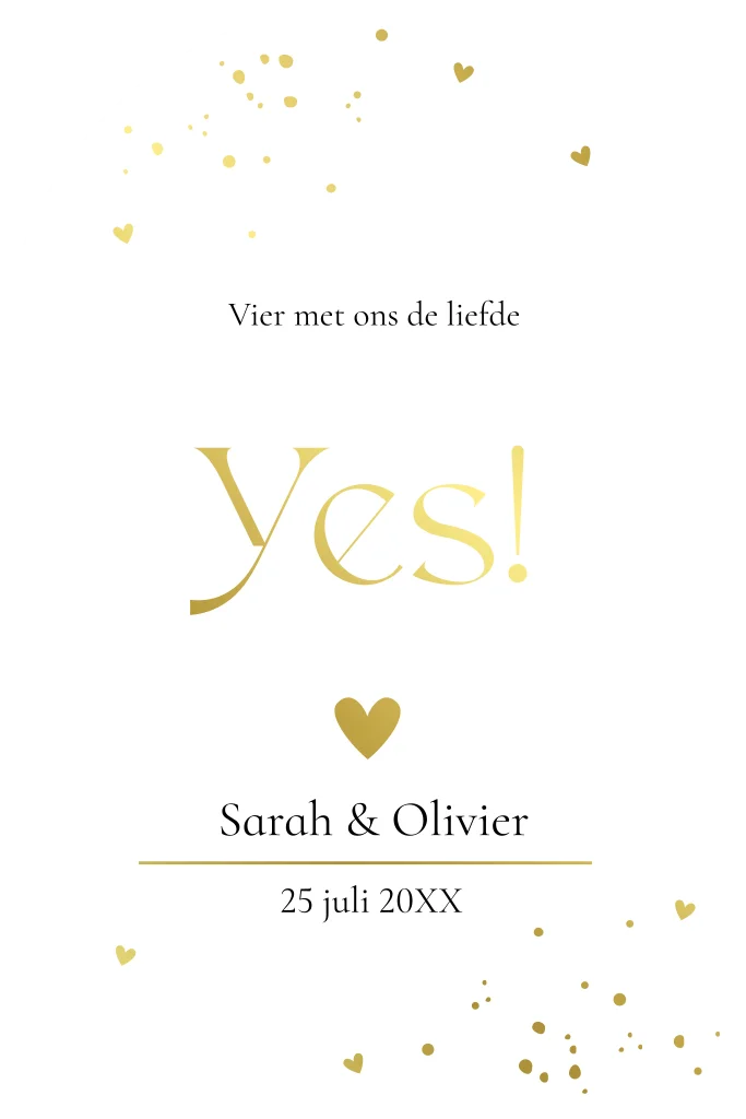 Trouwkaart boog wit met goudfolie