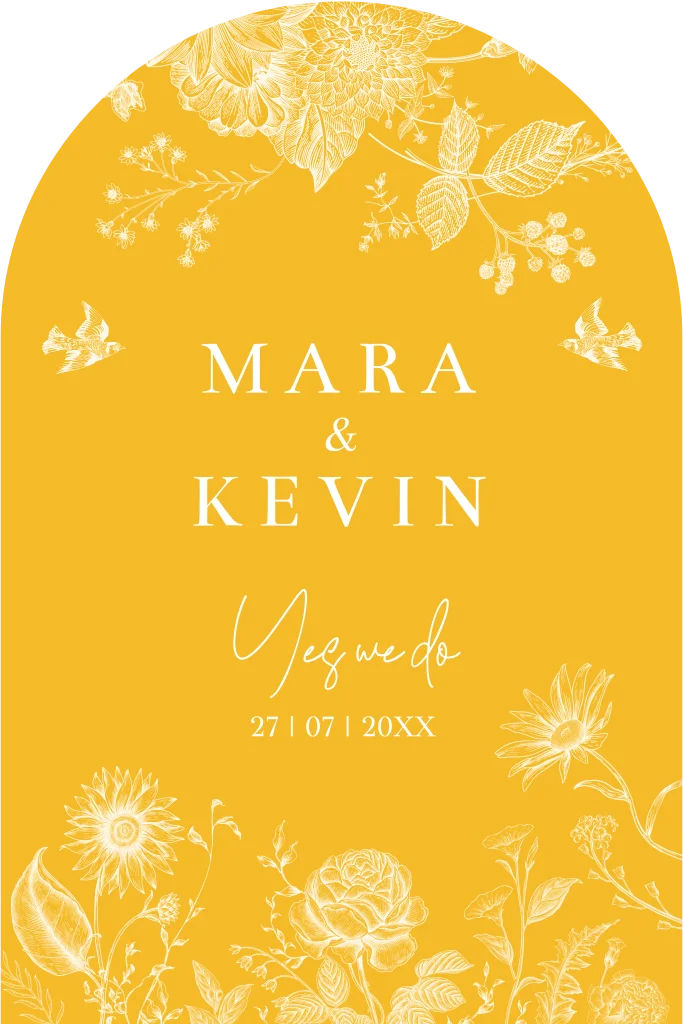 Trouwkaart boog bloemen geel botanisch bladeren