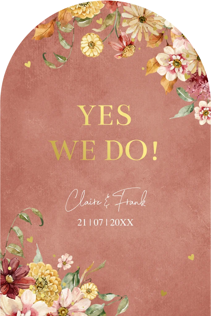 Trouwkaart boog vorm terracotta roze bloemen chic autumn