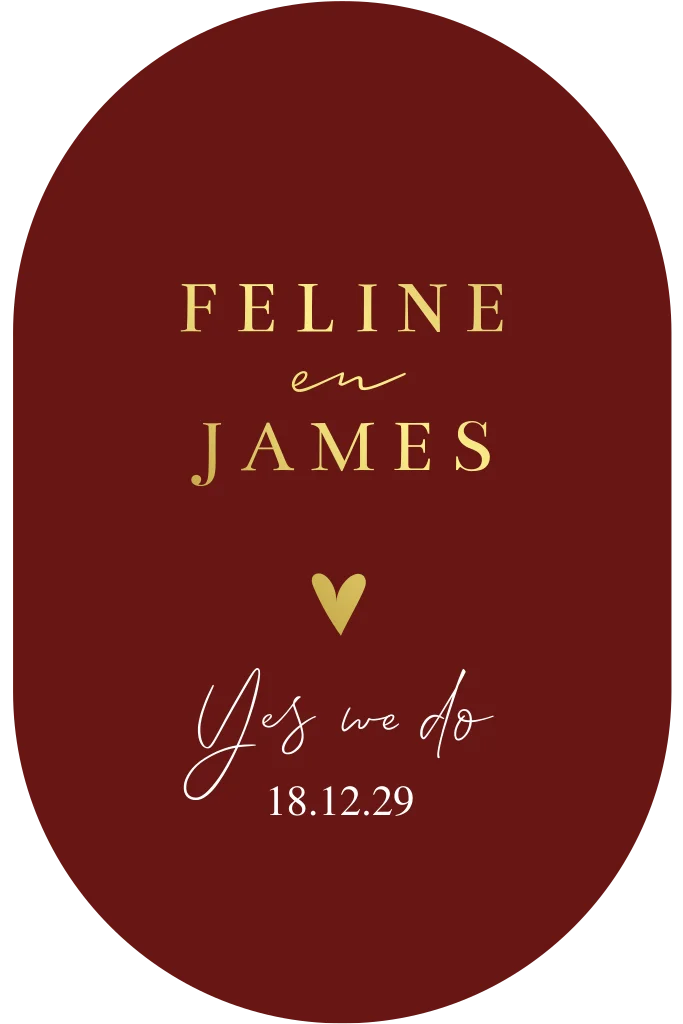 Stijlvolle trouwkaart rood in originele ovaal vorm met luxe goudfolie.