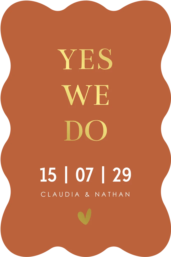 Moderne trouwkaart roestbruin in originele vorm golvend. Pas de kleuren naar wens aan!