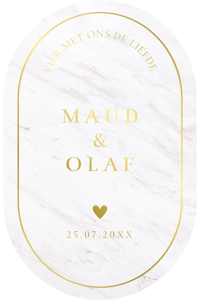 Trouwkaart wit marmerlook in originele ovaal vorm met goudfolie. Nodig jullie gasten uit met deze stijlvolle trouwkaart!