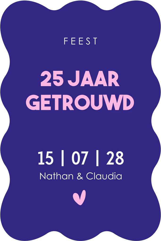 Uitnodiging jubileum 25 jaar getrouwd golvend blauw roze