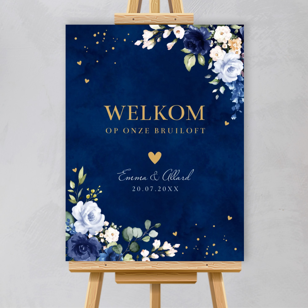 Verwelkom jullie gasten met een prachtig en persoonlijk welkomstbord. Pas gemakkelijk het design zelf aan en ga aan de slag met onze editor. Mocht je er niet uitkomen, neem dan gerust contact met ons op. Wij zijn er om je te helpen. Specificaties: • Formaat: 55 x 73 cm • Materiaal: forex 5 mm dik • Weersbestendig