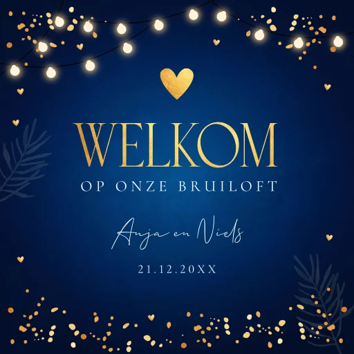 Bruiloftsbord blauw kerst lampjes goudlook 70x70 cm