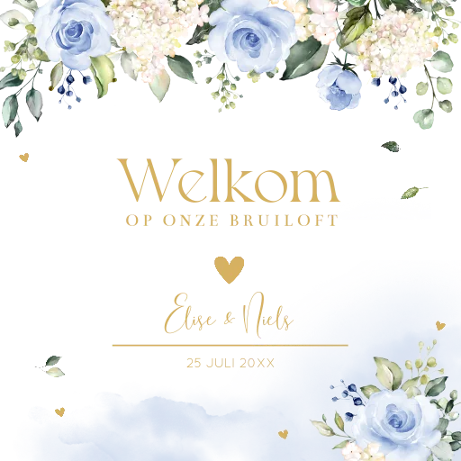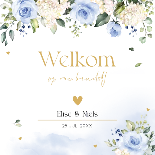 Verwelkom jullie gasten met een mooi en persoonlijk welkomstbord. Pas gemakkelijk het design zelf aan en ga aan de slag met onze editor. Mocht je er niet uitkomen, neem dan gerust contact met ons op. Wij zijn er om je te helpen. Specificaties: • Formaat: 70 x 70 cm • Materiaal: forex 5 mm dik • Weersbestendig