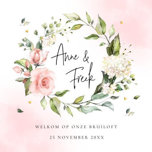 Bruiloftsbord bloemen krans roze | Pink Floral
