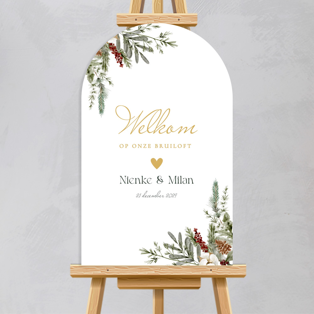 Verwelkom jullie gasten met een prachtig en persoonlijk welkomstbord. Pas gemakkelijk het design zelf aan en ga aan de slag met onze editor. Mocht je er niet uitkomen, neem dan gerust contact met ons op. Wij zijn er om je te helpen. Specificaties: • Formaat: 46x73cm • Materiaal: forex 5 mm dik • Weersbestendig