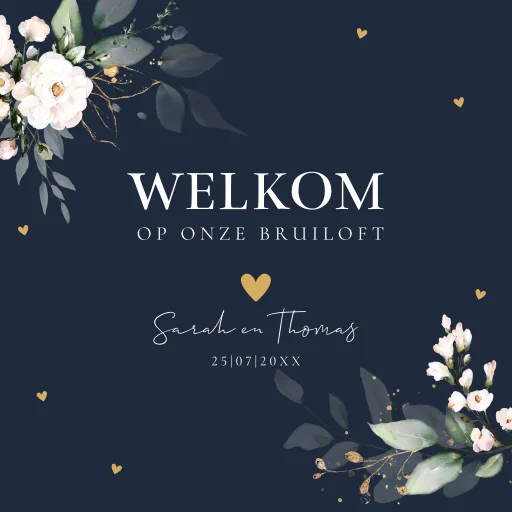 Verwelkom jullie gasten met een prachtig en persoonlijk welkomstbord. Pas gemakkelijk het design zelf aan en ga aan de slag met onze editor. Mocht je er niet uitkomen, neem dan gerust contact met ons op. Wij zijn er om je te helpen. Specificaties: • Formaat: 70 x 70 cm • Materiaal: forex 5 mm dik • Weersbestendig