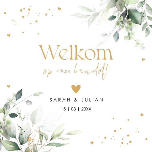 Verwelkom jullie gasten met een prachtig en persoonlijk welkomstbord. Pas gemakkelijk het design zelf aan en ga aan de slag met onze editor. Mocht je er niet uitkomen, neem dan gerust contact met ons op. Wij zijn er om je te helpen. Specificaties: • Formaat: 70 x 70 cm • Materiaal: forex 5 mm dik • Weersbestendig